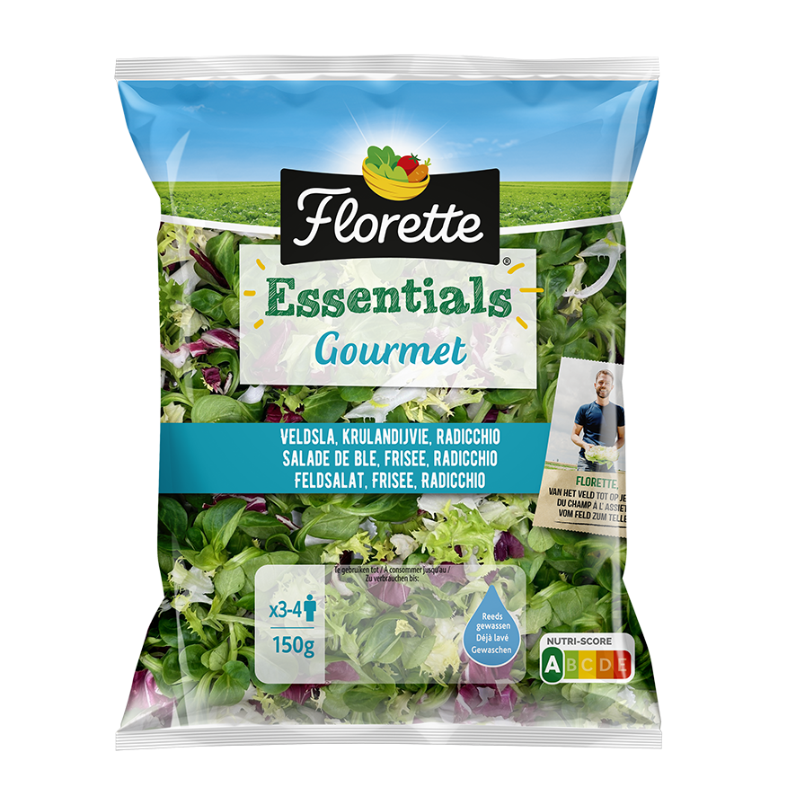 - Bereid ondertussen de salade door de vinaigrette met de Essentials Gourmet salade van Florette te mengen.