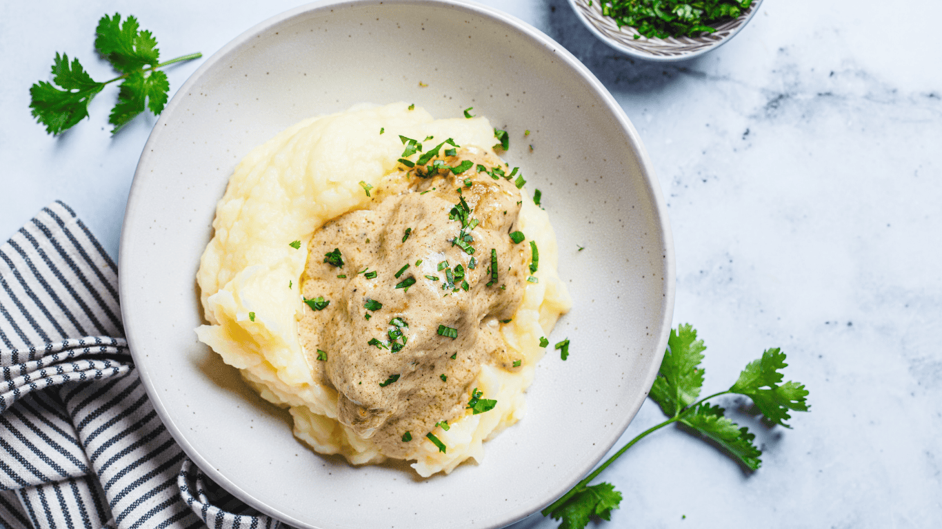 - Voeg de bieslook, een beetje boter, zout en peper toe en meng goed.