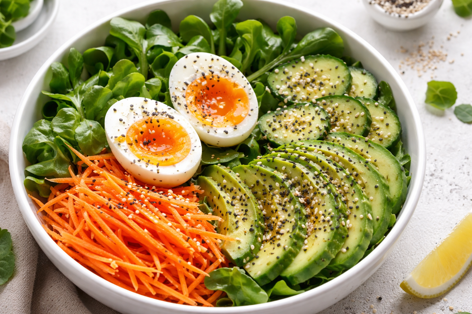 Salade “good gut” : mâche, carottes, œuf mollet & sésame